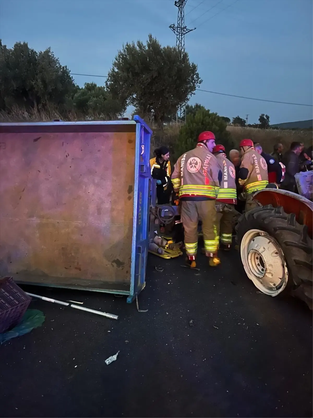 Yaralanan traktör sürücüsü E.G. ile römorktaki 5 kişi ambulanslarla hastaneye kaldırıldı.